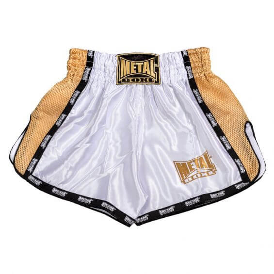 Élevez votre style et votre performance avec le short de boxe Metal blanc et or. Conçu pour offrir une liberté de mouvement optimale, ce short combine légèreté et durabilité. Fabriqué avec des matériaux respirants de haute qualité, il assure un confort supérieur pendant les entraînements et les combats. Sa coupe ergonomique et sa ceinture élastique garantissent un ajustement parfait, tandis que son design élégant en blanc et or vous fera briller sur le ring.